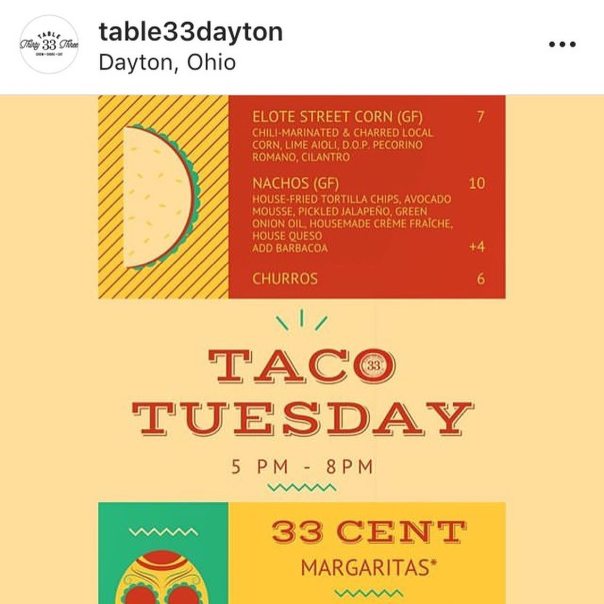 Taco Tuesday’s Table 33 Dayton 8.4.20